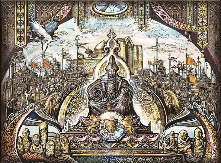 Она посвящена великим историческим личностям, которые оставили свой след в казахской истории и человеческих сердцах. Эпичные работы выполнены в графике, в черно-белых тонах или в состаренных золотых оттенках. Вете удалось в национальной стилистике изобразить известных Биев - Казыбек би, Толе би и Айтеке би, а также великих ханов и батыров степи.