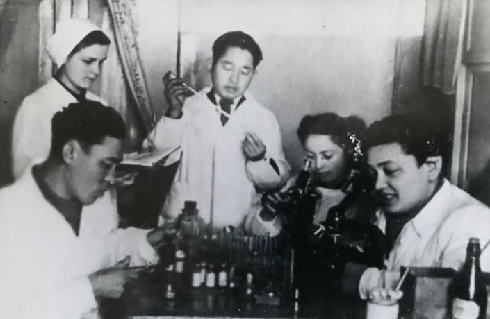 Ноэль Шаяхметов (справа) - студент Казахского государственного медицинского института имени В. Молотова, Алма-Ата, 1954 г.