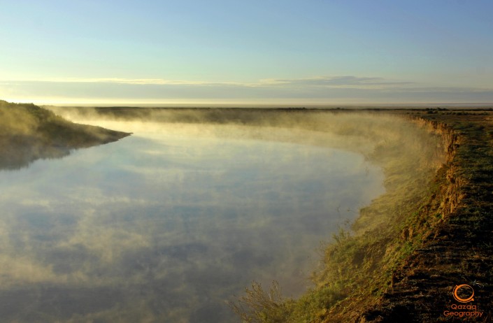 Июньское утро на высохшем берегу Бутаковского залива Аральского моря. Старый Мазар оказался более вечным, чем море, 2016 год.