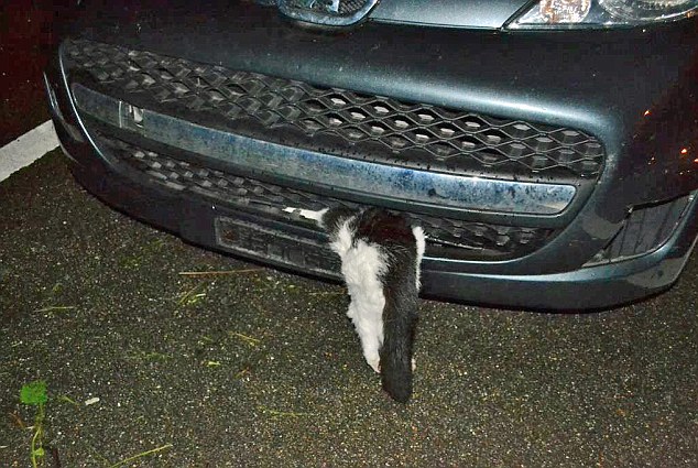 Услышав слабый глухой удар, она не придала этому значения, однако добравшись домой, обнаружила в решетке радиатора своего Peugeot кота, который подавал признаки жизни. После столкновения с автомобилем животное застряло в бампере и проехало таким образом 12 километров.