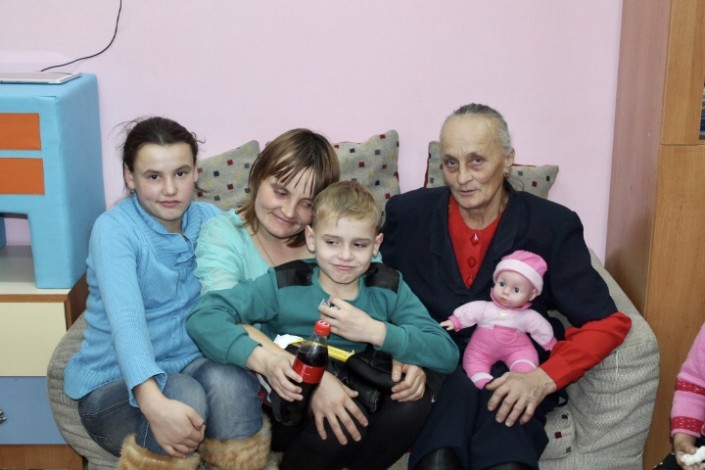 Алексей Журавлев со своей старшей сестрой, мамой и бабушкой © Урджарский ДПМСУ