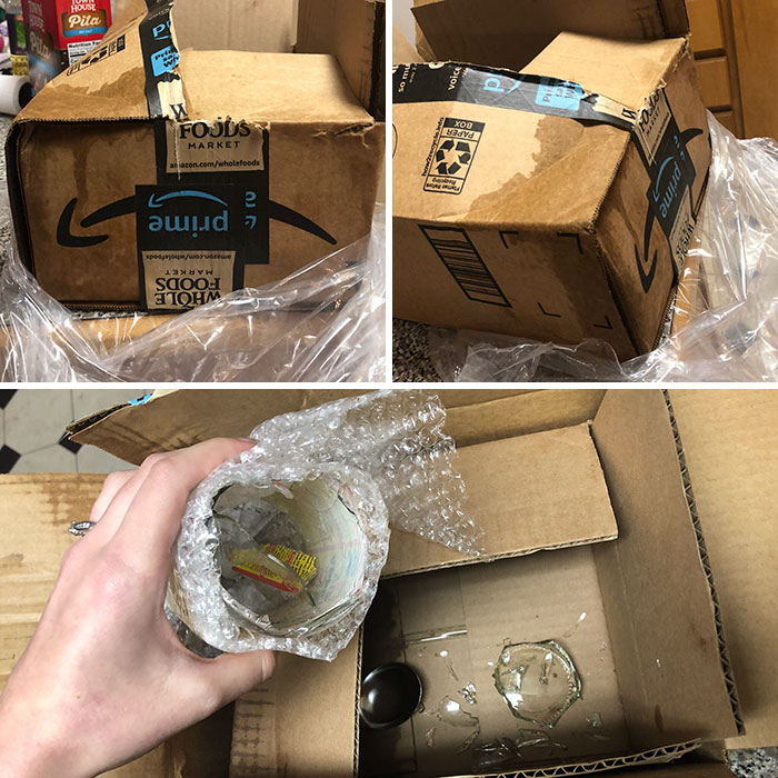 # 25 Шел дождь, но курьер даже не догадался поставить коробку в сухое место.
