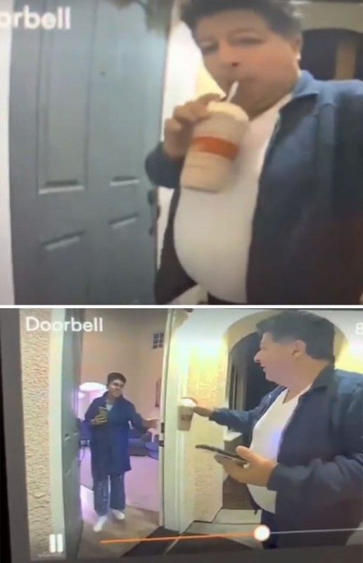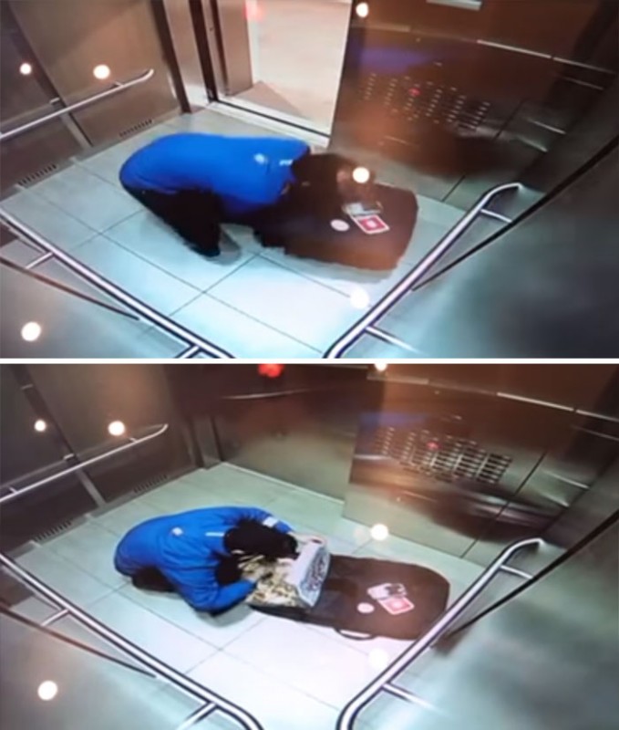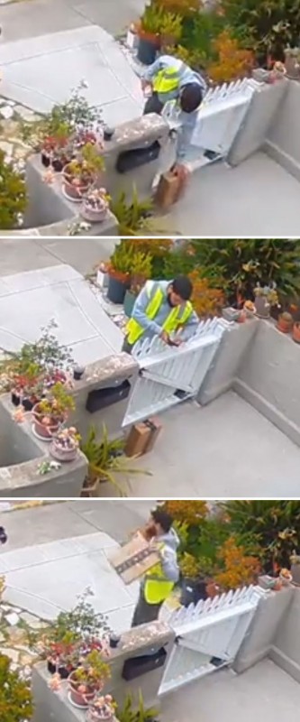 # 16 Камера видеонаблюдения записала, как курьеры швыряют посылку.