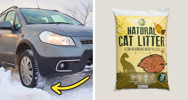 Как решить проблему: хранить в багажнике пару упаковок наполнителя для кошачьих туалетов, лучше всего древесного. Если машина забуксовала (особенно помогает на льду), высыпьте немного наполнителя под колеса, и вы без особого труда сможете выехать.