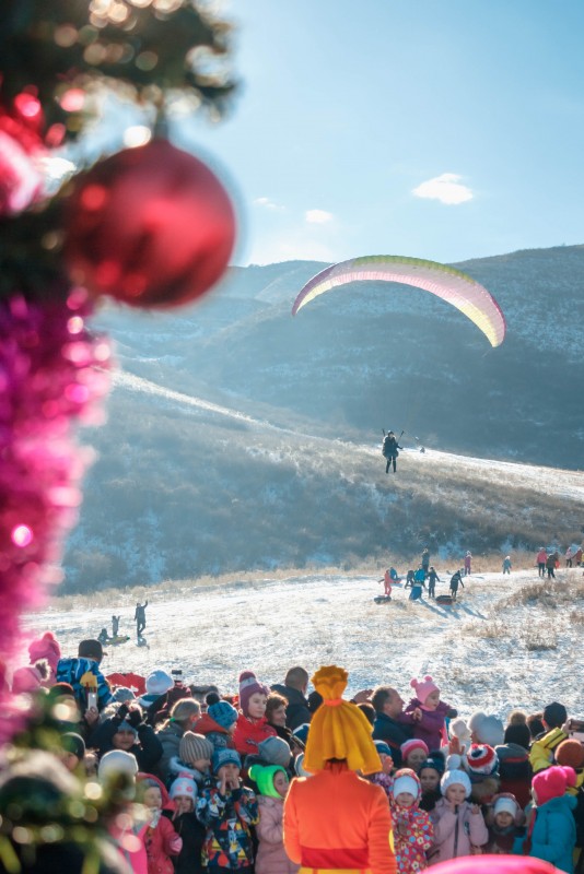 Каждый год активисты придумывают новую сказку с разными персонажами. Но, конечно, Дед Мороз со Снегурочкой "участвуют" в празднике ежегодно. Как рассказывает Изотова, когда дети впервые видят летающего героя, они в шоке от того, что человек, в принципе, может летать. "Ну и тем самым мы более взрослых детей привлекаем к парапланному спорту. Да и многие взрослые тоже начинают интересоваться".