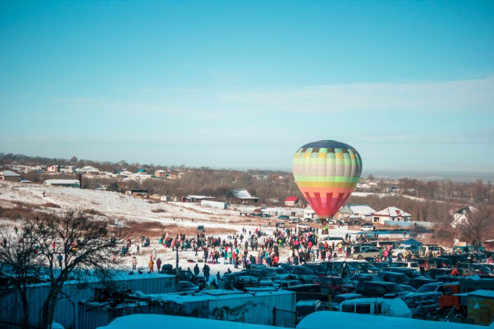 Это может быть бег в мешках, перетягивание каната, рисование на снегу и игра в воздушный волейбол.