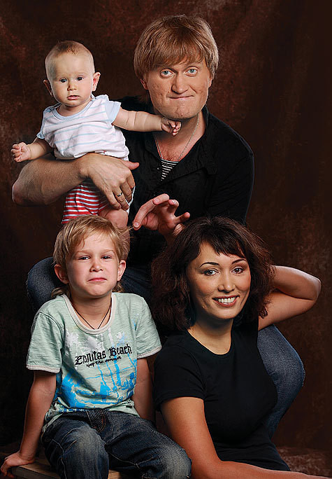 Кто бы мог подумать, что такой веселый и обаятельный актер так и не смог сам отыскать свою вторую половинку. В знакомстве помогли московские друзья. Уже тогда он буквально разрывался между двумя городами, живя на Урале и работая в Москве. В один из приездов его и познакомили с Эльвирой. На то, чтобы узнать друг друга и решиться на свадьбу у пары тогда ушло целых шесть лет. Зато теперь у них двое прекрасных сыновей.