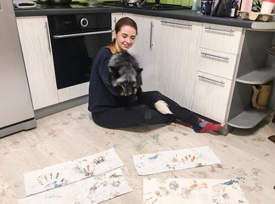 Лисенок рисует. © instagram.com/fluffy_black_fox