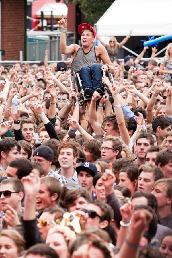Толпа помогла парню в коляске насладиться концертом в Мельбурне.