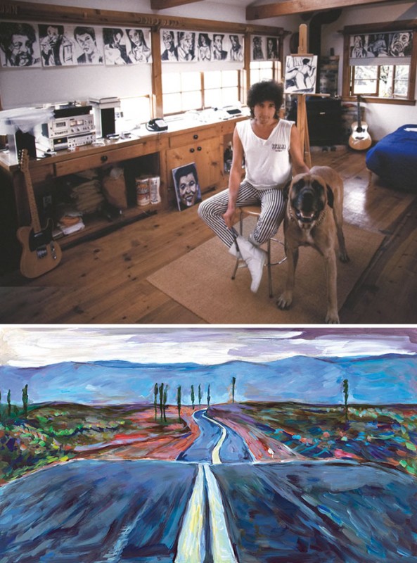 Культовый певец Боб Дилан известен и как прекрасный художник. Рисовать он начал в 60-х, когда восстанавливался после аварии на мотобайке. Работы Дилана впервые привлекли внимание широкой публики лишь в 1994 году: тогда вышел альбом - сборник набросков Дилана, сделанных в 1989-1992 годах, под названием Drawn Blank. Первая персональная выставка художественных работ артиста состоялась в 2007 году - его акварели и гуаши выставили в немецком музее изобразительных искусств в Хемнице. Боб Дилан на волне успеха этого мероприятия как следует пересмотрел свои архивы и создал более трех сотен новых работ.
