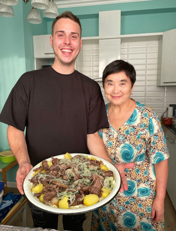 "Когда мы ездим в Италию, мы там обязательно делаем бешбармак. Везем туда с собой казы из Алматы. Я сам с мамой несколько раз готовил его, всем очень понравилось. Но раньше я был к бешбармаку равнодушен, только в последние полгода я прям очень люблю это блюдо. Оно как вино, не все иностранцы понимают толк в нем с первого раза.