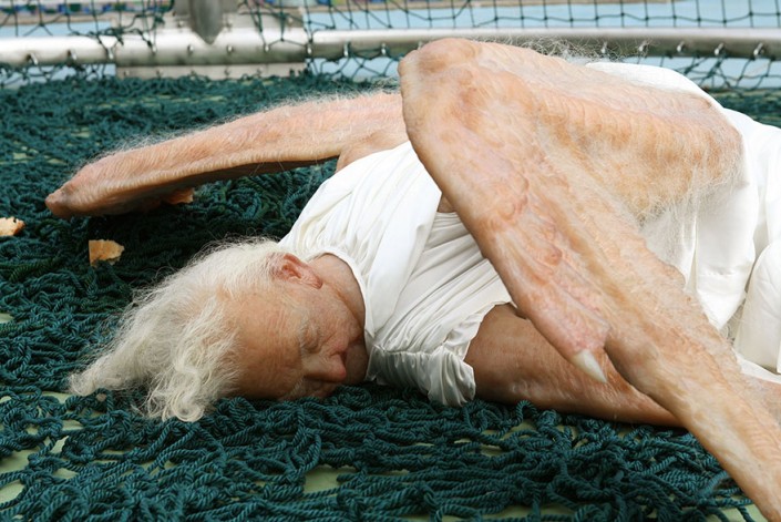 Пекинские художники Сун Юань (Sun Yuan) и Пен Ю (Peng Yu) создали скульптуру под названием "Ангел", которая поражает своей гиперреалистичностью, вызывая в то же время неоднозначные чувства при просмотре.