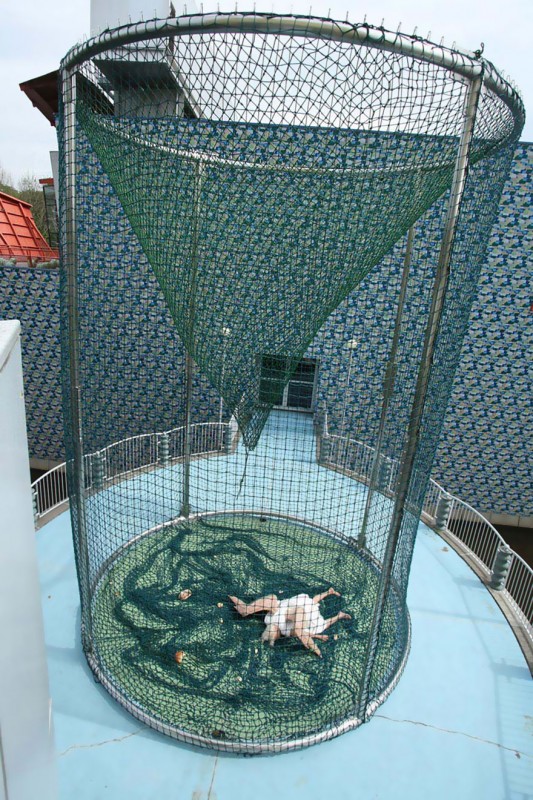 Инсталляция представляет собой спящего или, возможно, мертвого ангела, изображенного в образе старой женщины, лежащей в своеобразной ловушке из сетки. По словам авторов, целью работы было показать тонкую границу между нашим и сверхъестественным мирами.