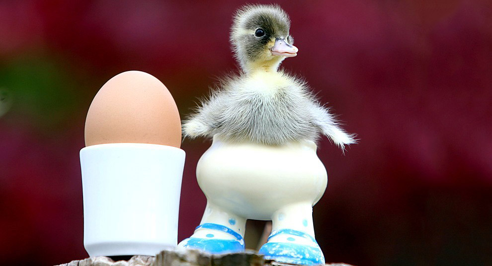 И в завершение подборки - утенок Седрик. Он с удовольствием позирует для пасхальной фотографии. Остальные кадры необычных животных смотрите здесь.