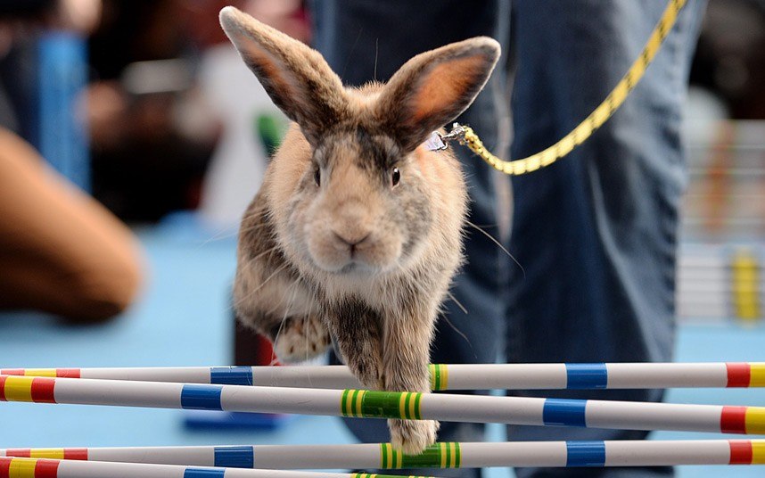 Кролик бежит к победе. Соревнования среди ушастых прошли 14 апреля 2014 года в Праге на Староместской площади.