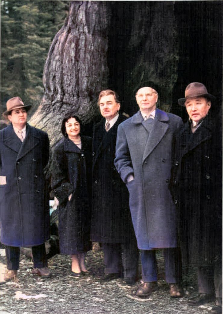 Олесь Гончар, Софья Кругерская, Леонид Леонов, Степан Щипачев и Мухтар Ауэзов в Йосемитском национальном парке. ©Литературный музей имени Степана Щипачева