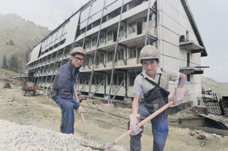 Строительство горнолыжного курорта "Шымбулак", 1982 год. ©Олег Ионов