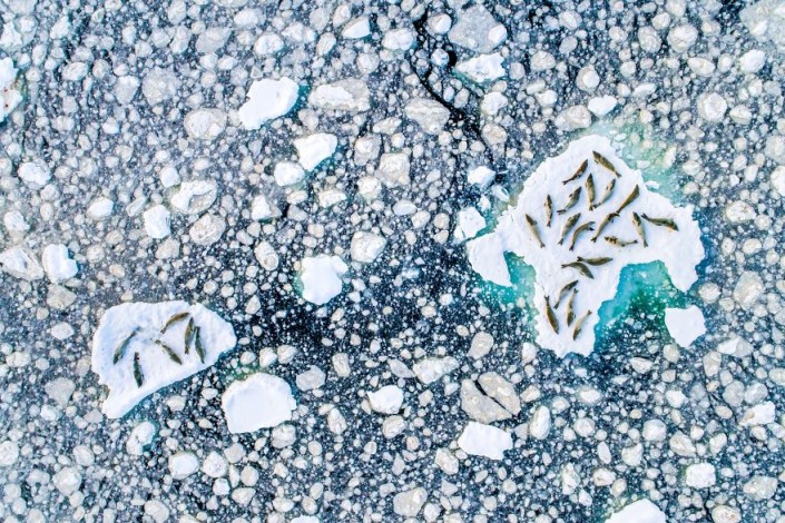 Морские котики, отдыхающие на льду в Антарктиде. @Florianledoux (Франция), Флориан Леду