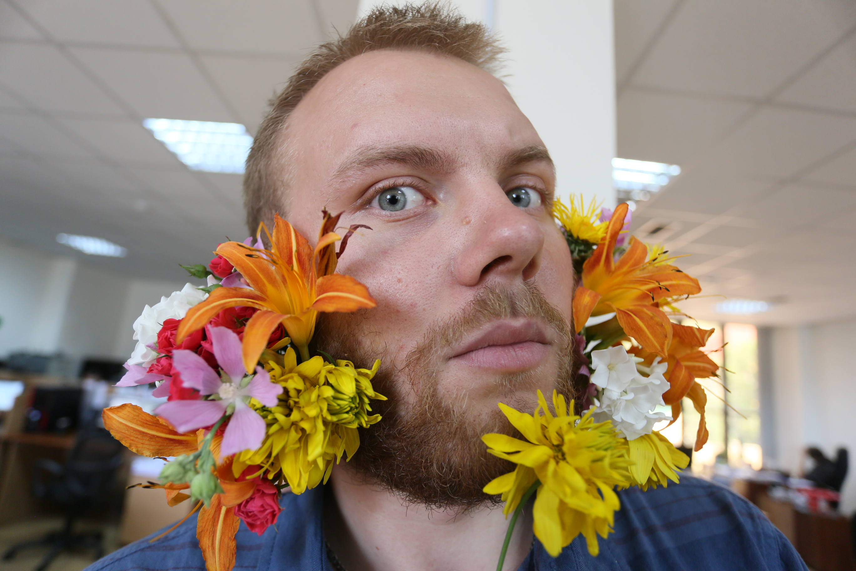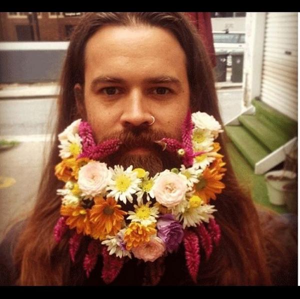 Вероятно, сильную половину на "цветочные бороды" вдохновило движение хиппи. Мужчины удивляют своей креативностью - кто-то вплетал цветы при помощи заколок, шпилек, скотча, в то время как другие пошли легким путем и просто нанесли цветы на бороду в фотошопе.