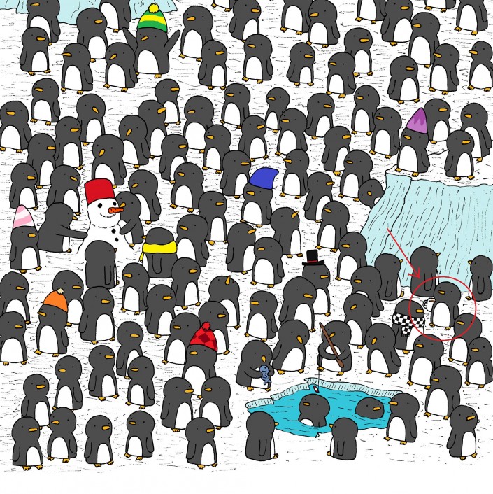 А теперь найдите кружку горячего шоколада среди пингвинов.