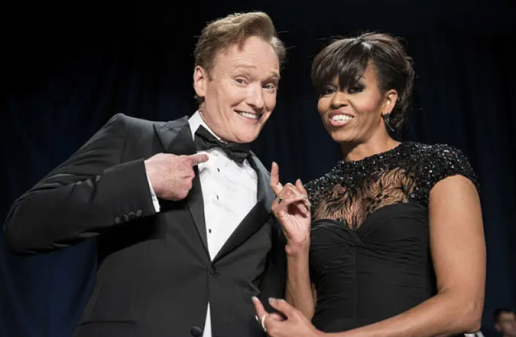 Накануне американский комик Конан О’Брайен, который сам состоит в браке 18 лет, пригласил Мишель в студию, чтобы поговорить о взаимоотношениях мужчин и женщин.