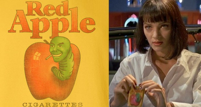 ◘ Тарантино не любит рекламу в кино. В его фильмах герои курят только сигареты придуманной Тарантино марки Red Apple. Единственным исключением является пачка сигарет Capitol W, которая появилась в одном кадре фильма "Доказательство смерти".
