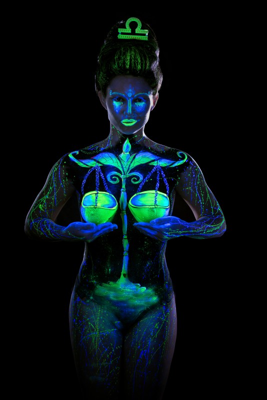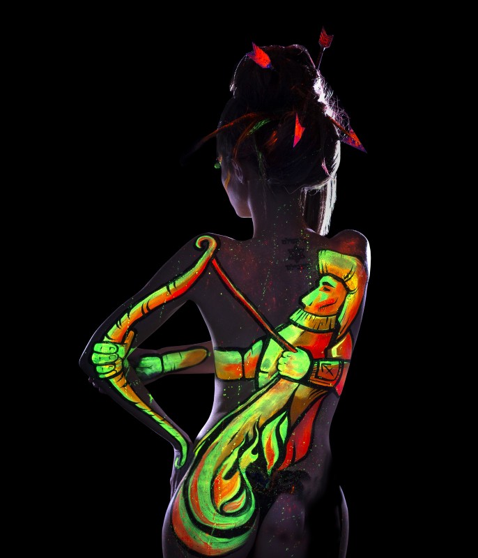 "Хотелось "поиграть" с рельефами тела, с позами, чтобы рисунок "сливался" с моделью. Задача непростая, поэтому где-то получилось, а где-то просто изобразили знак зодиака на спине. Несомненно работа была коллективной", - поделилась с нами Алена.