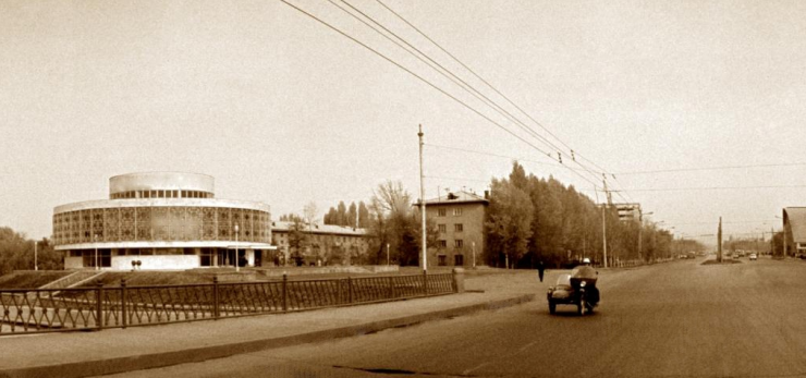 "Горзеленстрой" выселил всех сразу, лишь совсем старенькая женщина не хотела съезжать. Дом у нее был не новый, небольшой, но, очевидно, ей давали что-то не лучше. Тогда можно было выбирать, капризничать, вот она и ставила свои условия. Несмотря на ее возмущение, строительство шло полным ходом: сделали котлован, планировку, подняли здание. На фото с левой стороны висит коромысло, справа от дома - рукомойник, он был без воды. Строители снесли полдома, но сделали ей лестницу. Самое интересное: она была без перил, и бабушка с трудом поднималась и спускалась по деревянным ступенькам. Снимок я сделал в 1971 году. Все равно этот дом простоял недолго, его снесли. В 1975 году открыли цирк. Я присутствовал на торжественной церемонии. Снимал, как символический ключ строители вручали директору цирка. Собрались не только горожане, но и приехали жители окраин. После торжественной передачи устроили цирковое представление, зал был полон, жители гордились нашими артистами и таким красивым сооружением", - вспоминает профессиональный фотограф.