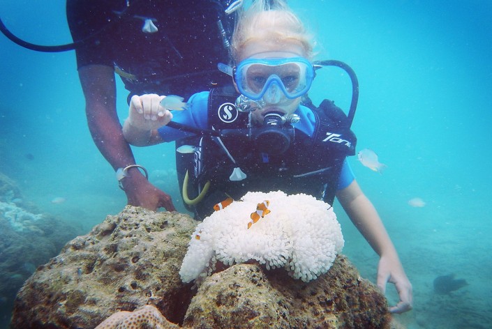 На свой 9-й день рождения девочка получила в подарок океан - первое погружение с аквалангом.