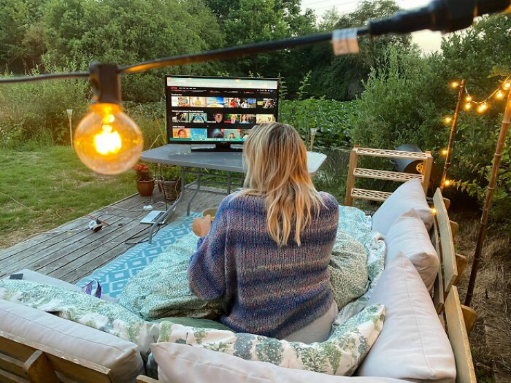 Пространство рядом с домом на колесах пара также постаралась сделать максимально уютным