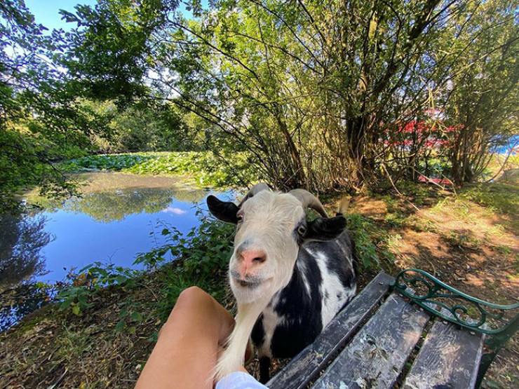 Автобус припарковали возле живописного пруда, где у пары есть две козы, которые дают свежее молоко. У жильцов нет соседей, они находятся в 10 минутах ходьбы от ближайшего жилого квартала. Пара наслаждается тишиной и красивой природой.