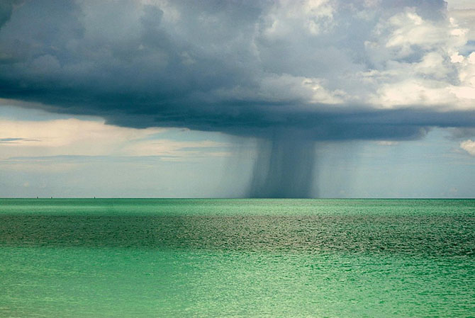 В атмосфере начинают формироваться облачные карманы, заполненные большими капельками воды или даже кристалликами льда, которые под своей тяжестью буквально проваливаются в чистый воздух.