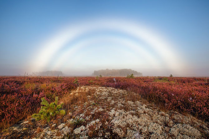 Туманная радуга - это еще одно оптическое явление в атмосфере, похожее на хорошо известную всем радугу. Она образуется в результате дифракции света и капель воды размером около 0,02 миллиметра. Увидеть ее, соответственно, можно только во время тумана.