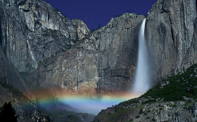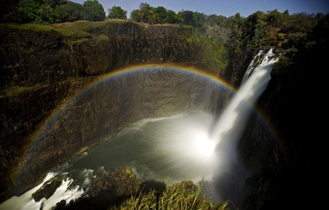 Это явление гораздо проще увидеть в фэнтезийном квесте, чем наяву. Требуется множество факторов: полная Луна должна находиться невысоко, небо при этом быть темным, а напротив светила должен располагаться мощный водопад.