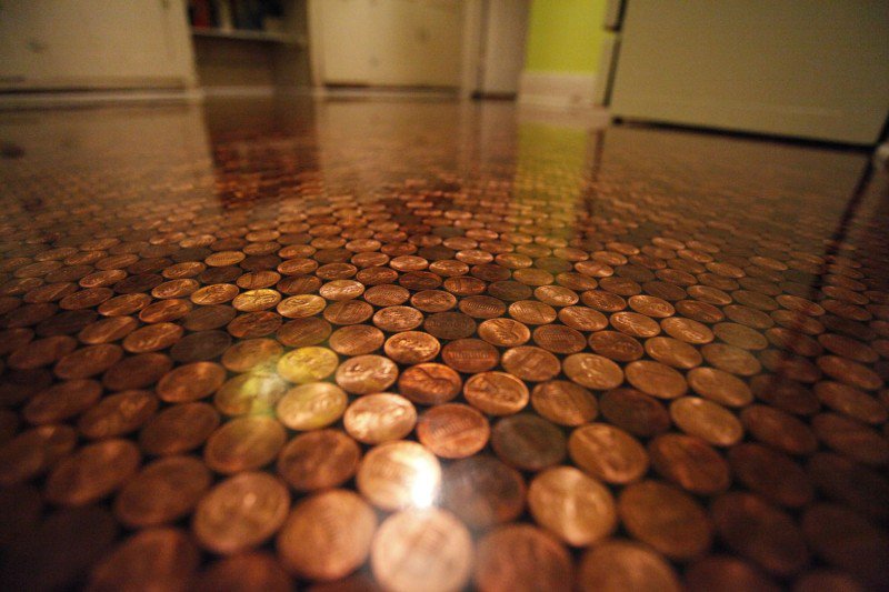 У нас всех, как правило, слишком много мелочи в карманах, кошельках и копилках. Некоторые из нас оставляют ее на кассе в супермаркетах, но действительно ли имеет смысл рассчитываться таким образом, ведь такая экономия вряд ли приведет тебя к процветанию и богатству. Поэтому возникла идея украсить мелочью свою жилую площадь. Находчивые умельцы изобрели способ, благодаря которому ты сможешь очень красиво украсить полы своего жилья медными монетами. Это довольно легко сделать.