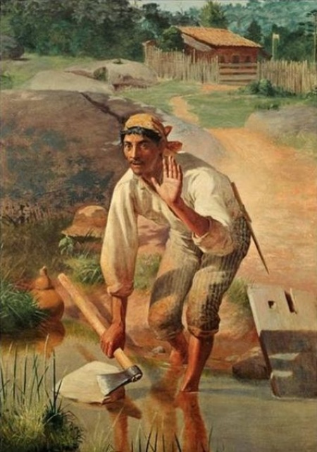 Хосе Феррас де Альмейда Хуниор, Бразилия. Убийца с топором извиняется заранее, 1894. Холст, масло.