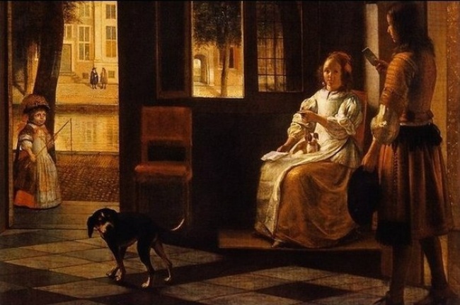 Питер де Хох, Нидерланды. Положи свой гребаный айфон и сходи с дочерью на рыбалку, 1670. Холст, масло.