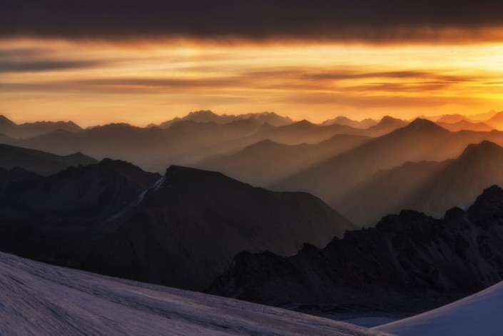 Рассвет на вершине пика Астана (4555 м), ущелье Баянкол, Центральный Тянь-Шань. Август, 2017 год. © Ольга Кулакова.