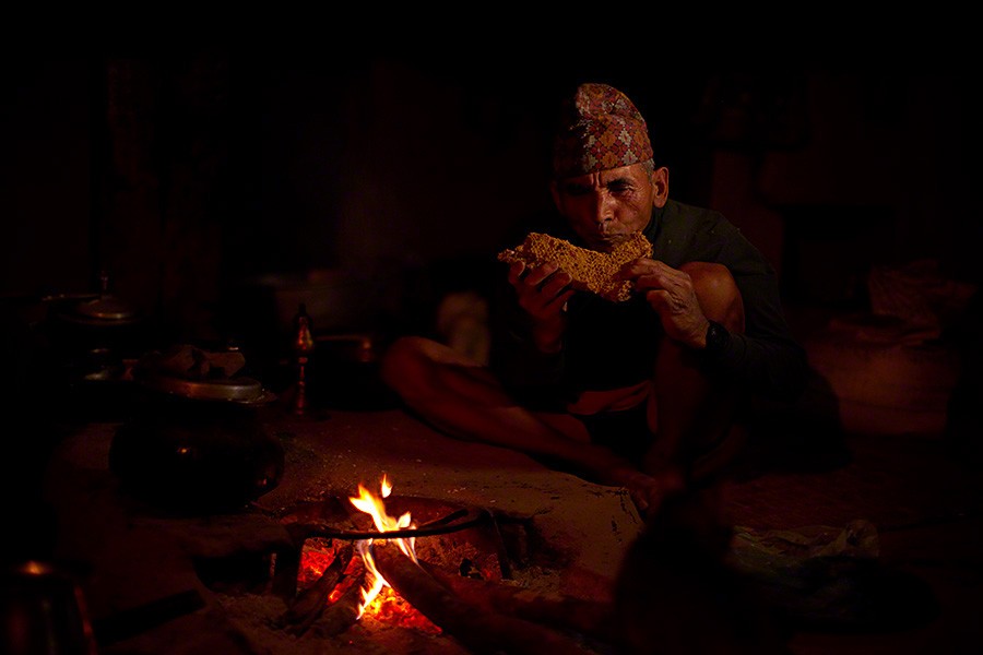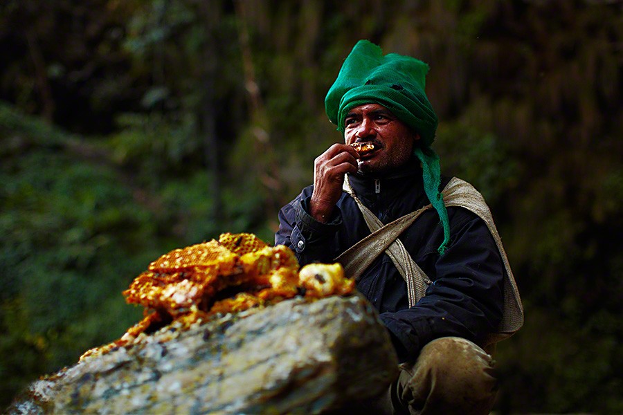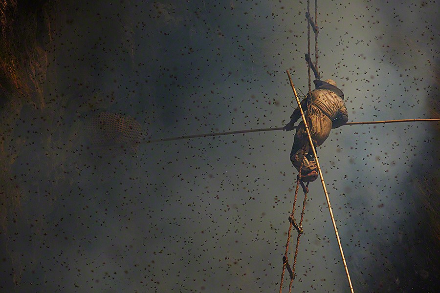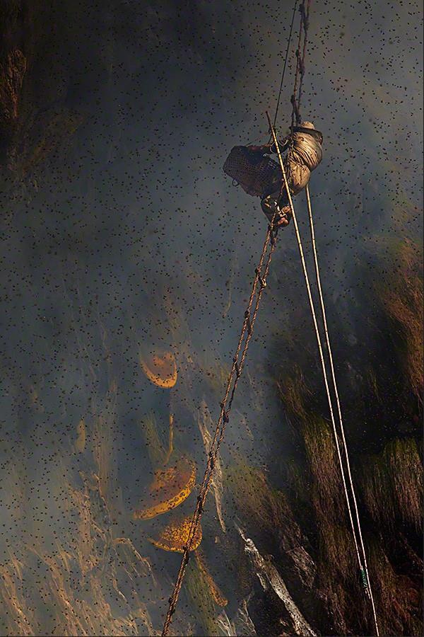 Высоко в предгорьях Гималайских гор, в центральном Непале охотники за медом из племени гурунг дважды в год, рискуя жизнью, взбираются на крутые утесы скал, чтобы забрать мед у самых крупных и опасных пчел в мире. В этой местности люди стали собирать мед примерно 12 тысяч лет назад, а навыки, необходимые для поддержания этой древней и священной традиции, на протяжении сотен лет передаются из поколения в поколение. Путешественник и фотограф Эндрю Ньюи (Andrew Newey) провел две недели с этим племенем и задокументировал их древнюю традицию в своем проекте "Гурунги - охотники за медом".