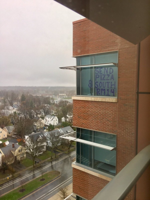 Пациент, устав от пресной пищи, придумал необычный способ сообщить миру, что ему захотелось пиццы. Он на окне больницы огромными буквами написал: "Отправьте пиццу", указав номер своей палаты.