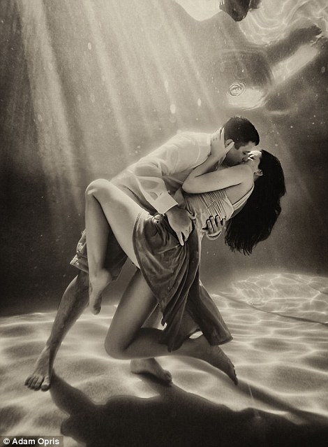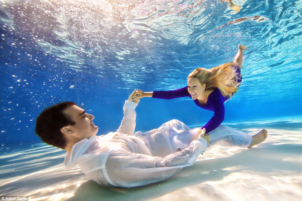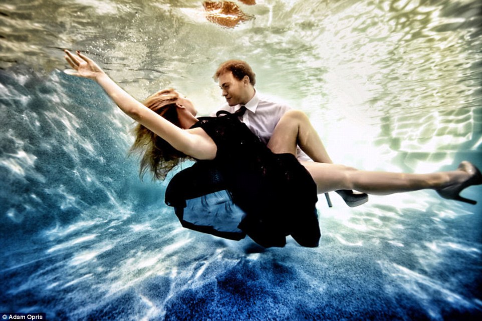 Американский фотограф Адам Оприс делает необычные снимки влюбленных пар. Для того, чтобы придать кадрам эффект невесомости, он проводит съемку под водой. Как отмечает издание Daily Mail, необычные условия фотосессии совмещены с традиционной композицией в виде вечерних нарядов и воздушных шаров.
