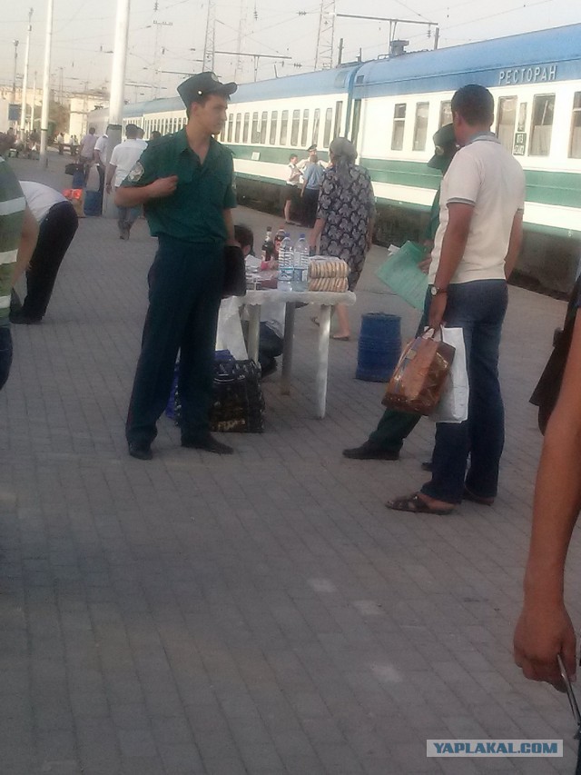 На перронах ожидают только пассажиры. Я видел несколько туркменок, вот уж где экзотика. У них такие же зеленые паспорта, но туда не попасть, хотя я еду практически на границу с Туркменистаном.