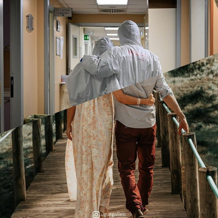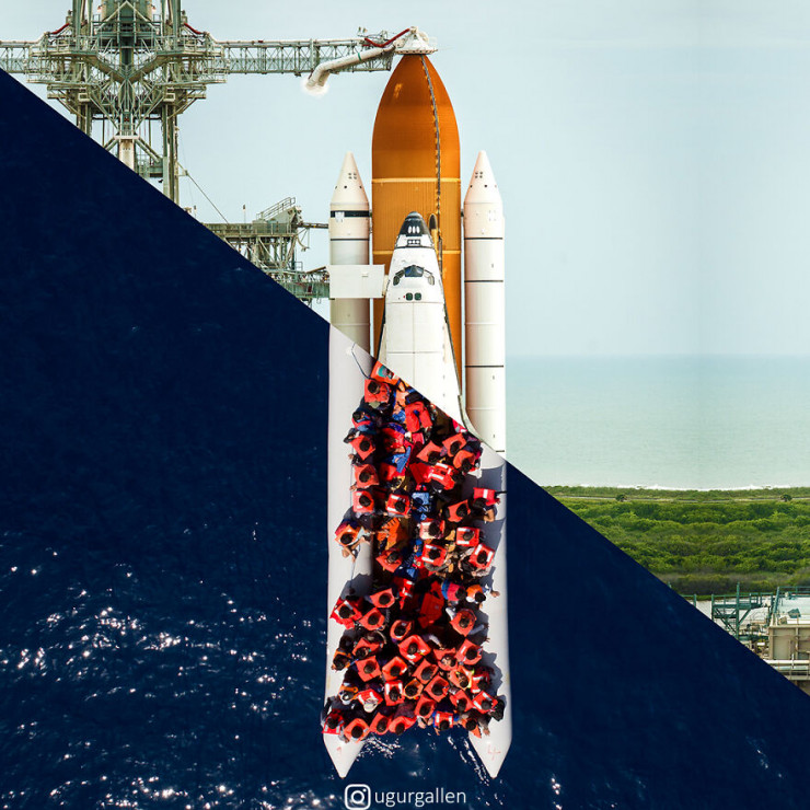 Угур Галленкус (Ugur Gallenkus) - цифровой художник из Стамбула, Турция. Фотограф создает коллажи, используя снимки с аналогичной эстетикой, бедность и богатство, войну и мир, спокойствие дома и драму миграции.