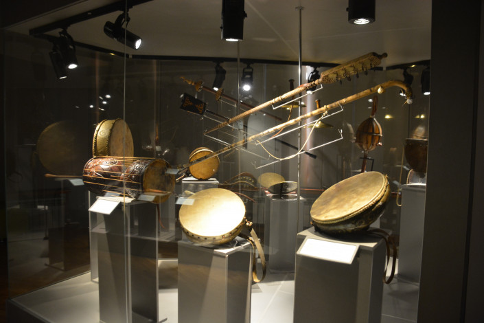 Богатый фонд - домбра, здесь ее около 200 разновидностей, все они индивидуально украшены, выполнены в своеобразной форме и из разных материалов.