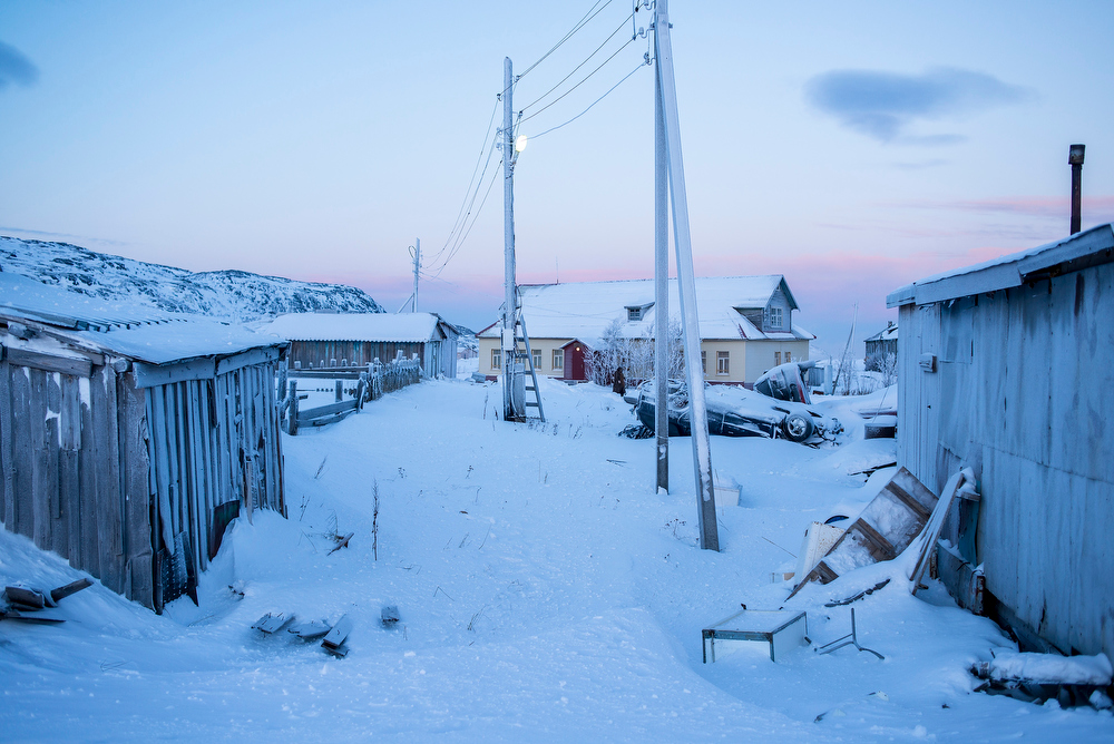 Если не обращать внимания на старые и разрушенные дома, тут очень красиво. Природа по-северному красивая: много чистого белого снега, тихо, суровые низкие горы, от моря исходит пар. День короткий и солнца пока не видно, но цвета неба очень чистые: от глубокого индиго до нежного розового и ярко-оранжевого. Ночью даже в городе хорошо видны звезды. И полярное сияние.