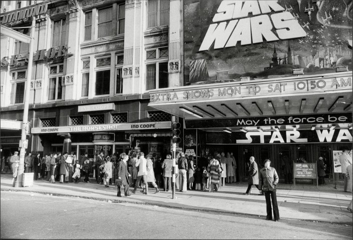 Длинная очередь желающих посмотреть фильм, Лондон, 1977 год.