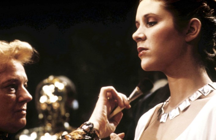 Художник по гриму готовит Кэрри Фишер к финальной сцене.