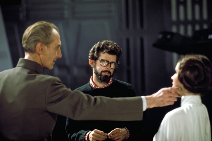 Джордж Лукас снимает сцену, в которой принимают участие Питер Кушинг и Кэрри Фишер.
