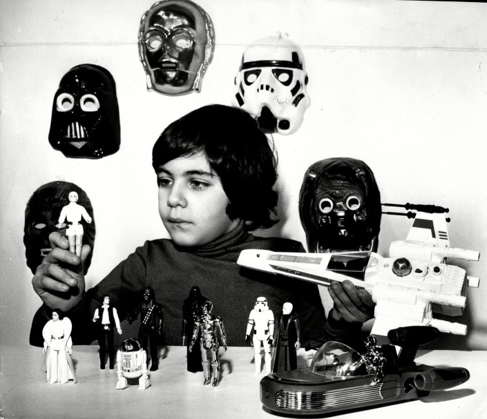 Мальчик играет с фигурками персонажей "Звездных войн", 1977 год.