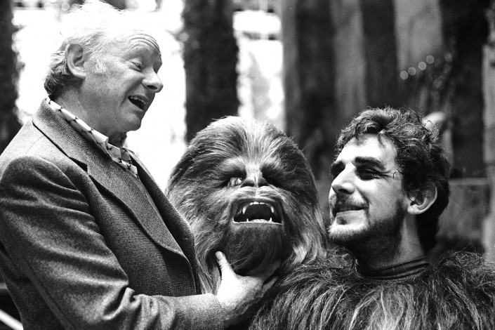Художник по гриму Стюарт Фриборн обсуждает текст Чуи с Питером Мейхью.
